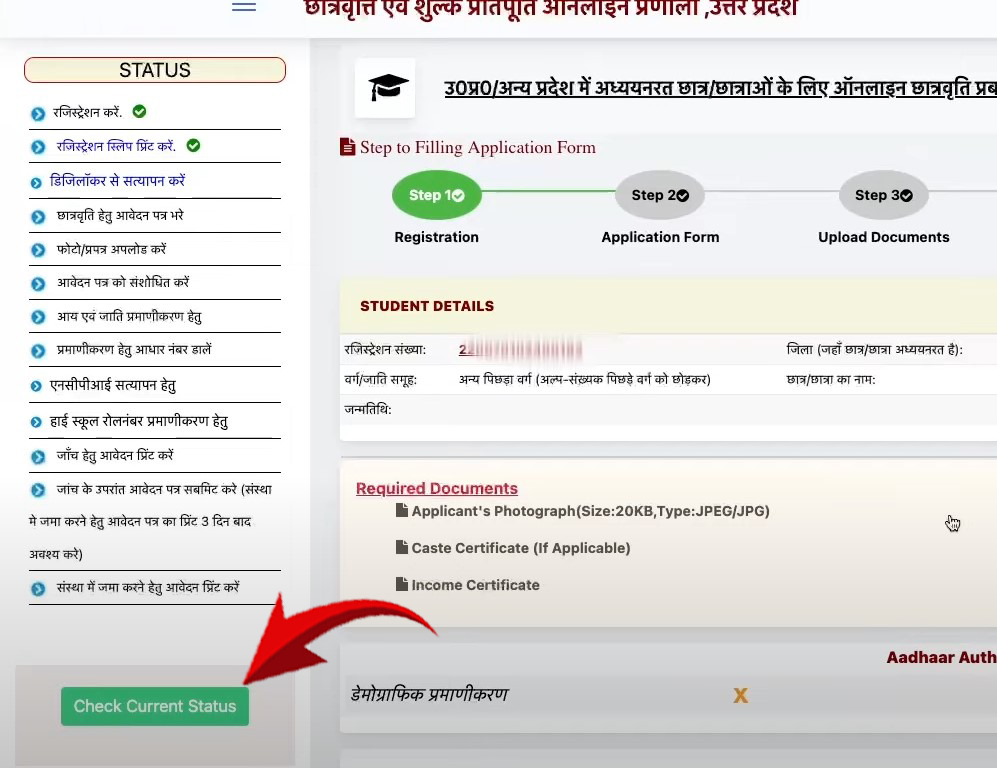- UP Scholarship current status check 2025 मोबाइल से एक क्लिक में करंट स्टेटस चेक कैसे करें?