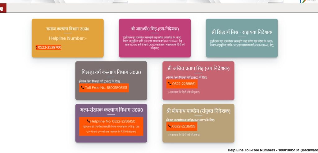 अब बात करने वाले हैं जिन लोगों का स्कॉलरशिप अभी तक भेजा ही नहीं गया है। उनका करंट स्टेटस में कुछ सो ही नहीं हो रहा है, तो वह क्या करें तो हम उनके बारे में अगर बात करें तो उनका स्कॉलरशिप आप लोगों को मैं कुछ नंबर दे रहा हूं। यह नंबर आप लोगों को @scholarship.up.gov.in ऑफिशल वेबसाइट से दिया गया है, उन नंबरों पर आप लोगों को संपर्क करना है, तो आप लोगों को उन नंबरों पर संपर्क करना है। जिसमें कि आप लोगों को काफी सारे नंबर होंगे सामान्य कास्ट वालों के अलग नंबर होंगे SC कास्ट वालों के अलग नंबर होंगे।